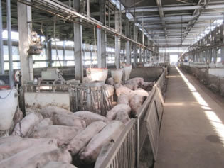 環境隔離型のウィンドレス式の離乳豚舎育成および肥育期の豚の飼育環境は、土着微生物を生かした発酵床にて飼育しています。糞尿は土着微生物に分解され、とても臭気が少なく済んでいます。床を良い状態で管理するには非常に手間と時間がかかりますが、豚と環境の為に、土着微生物を生かし、臭気の少ない肥育豚舎を実現しました。 床には1.2m剪定枝のチップを敷き詰め豚、環境にやさしい豚舎です