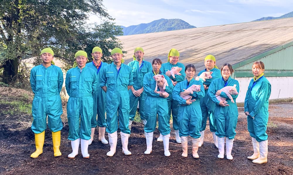 スタッフは動物が好きな人たちの集まりです。健康で美味しい豚を育てるため、日々豚の健康状態や肥育環境などに注意して作業を行っています。