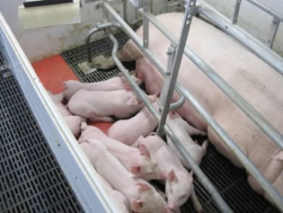 子豚の飼育環境はストレスを最小限にすることと、周辺環境を考慮した離乳豚舎で飼育しています。子豚に最適な環境を常に維持するとともに、周囲へ匂いの影響を出さないようにしています。