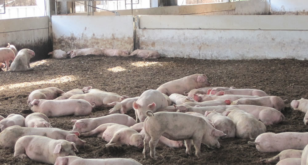 環境隔離型のウィンドレス式の離乳豚舎育成および肥育期の豚の飼育環境は、土着微生物を生かした発酵床にて飼育しています。