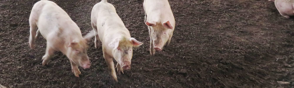 環境隔離型のウィンドレス式の離乳豚舎育成および肥育期の豚の飼育環境は、土着微生物を生かした発酵床にて飼育しています。糞尿は土着微生物に分解され、とても臭気が少なく済んでいます。床を良い状態で管理するには非常に手間と時間がかかりますが、豚と環境の為に、土着微生物を生かし、臭気の少ない肥育豚舎を実現しました。 床には1.2m剪定枝のチップを敷き詰め豚、環境にやさしい豚舎です